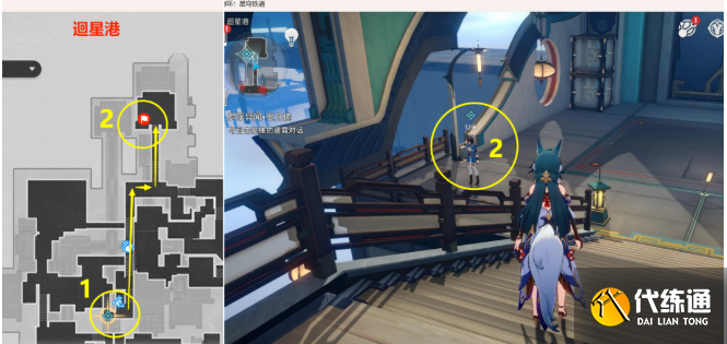 1、追蹤任務(wù)來到【迴星港】下圖1任務(wù)點(diǎn)過完劇情后,直接2任務(wù)點(diǎn)位置即可
