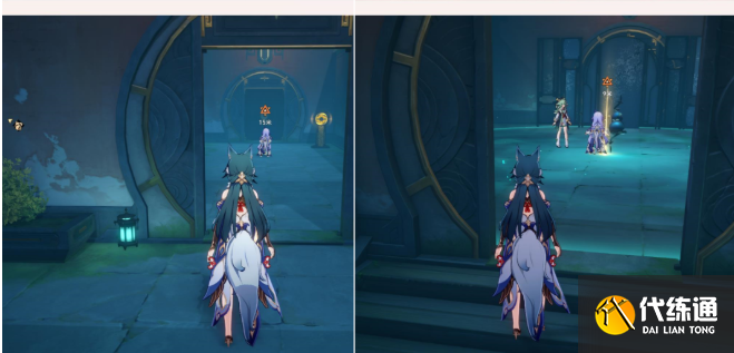 6、到下圖這里后,左右都有一個開關(guān),我們將右邊這個門關(guān)了,這里是關(guān)第2個門,然后前面繼續(xù)追著【白露】走