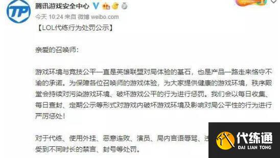 對于“代練”行為的處罰,官方會通過技術(shù)手段來檢測大家,任何被發(fā)現(xiàn)證實參與了代練行為的賬號(包括打手和被代練者)將會受到以下的處罰: