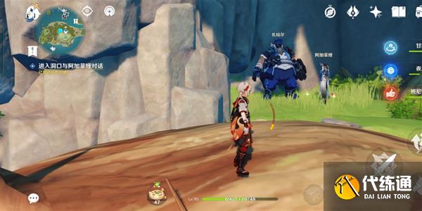 (2)然后我們直接傳送到破破島上方的傳送錨點,然后我們飛到半山腰,可以看到一個被關的愚人眾,我們過去進行對話。