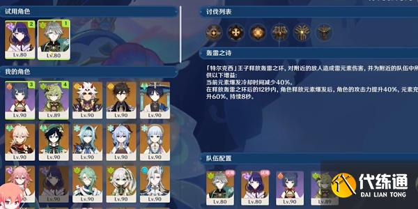 3、我們需要使用【特雷克西】的協(xié)力,然后保證雷電將軍雷眼開啟,之后艾爾海森普攻輸出即可。