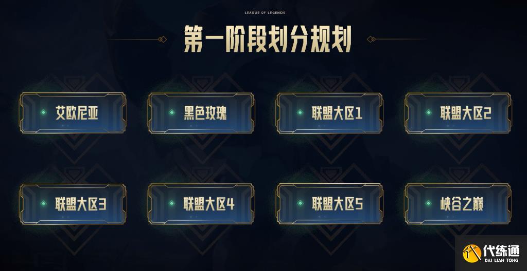 【第一階段】29個(gè)大區(qū)將劃分到8個(gè)聯(lián)盟大區(qū),同一聯(lián)盟大區(qū)內(nèi)的召喚師開(kāi)啟跨區(qū)匹配功能,可以相互匹配、互加好友和游玩所有模式,同時(shí)排行榜也將打通。