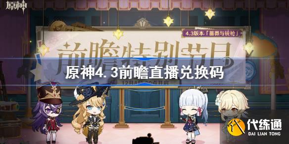 原神4.3版本即將正式上線,官方也是公布了原神4.3直播時間,很多小伙伴想知道原神4.3直播兌換碼有什么,現在就和小編一起來看看原神4.3前瞻直播兌換碼吧。