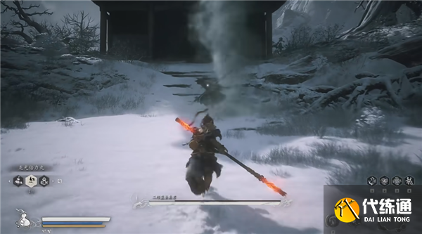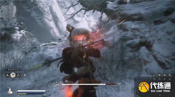 2、開局直接芭蕉扇把二郎神韌性條扇掉,然后上去攪棍一直捅,這個地方注意角度要卡好,要不然攪棍戳空了二郎神容易從僵直中回復過來。
