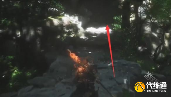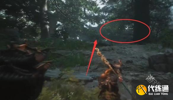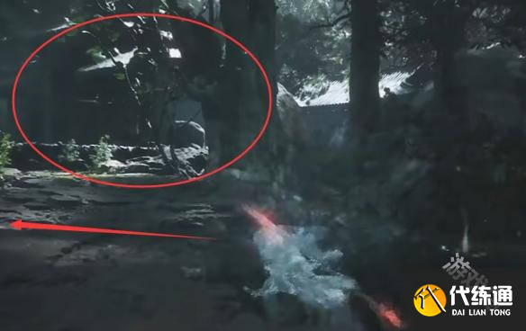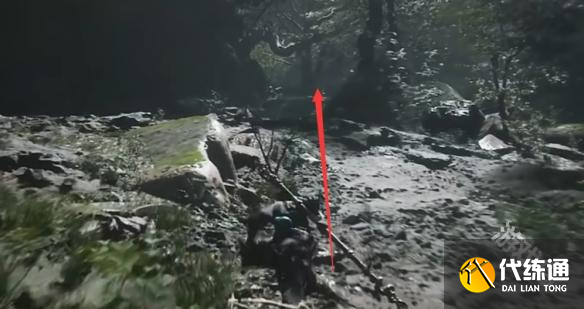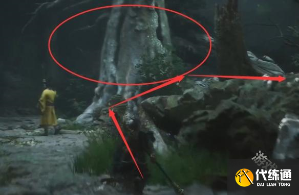 6.再上去之后可以看到圖上的大樹,在箭頭處掉頭往右側走。