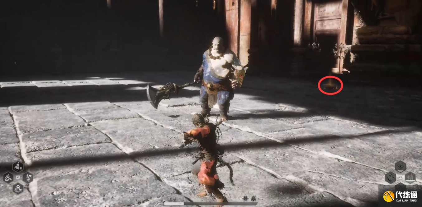 3、回到地圖正中間的廣場,往北走來到地圖最北面的院子,先去右邊打不凈得到【精魄】不凈,不凈所在房間里還有個【打坐蒲團】。