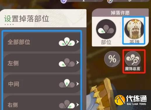 可以在關卡內魔飾總覽查詢自己英雄魔試佩戴情況,超過關卡超過22級可以選擇具體英雄的配飾進行許愿。