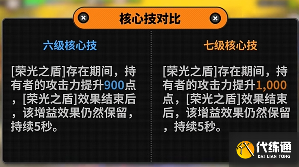 4、7級(jí)核心技比6級(jí)多100點(diǎn)的攻擊增益,對(duì)主C的輸出有一定的提升,會(huì)影響護(hù)盾值。