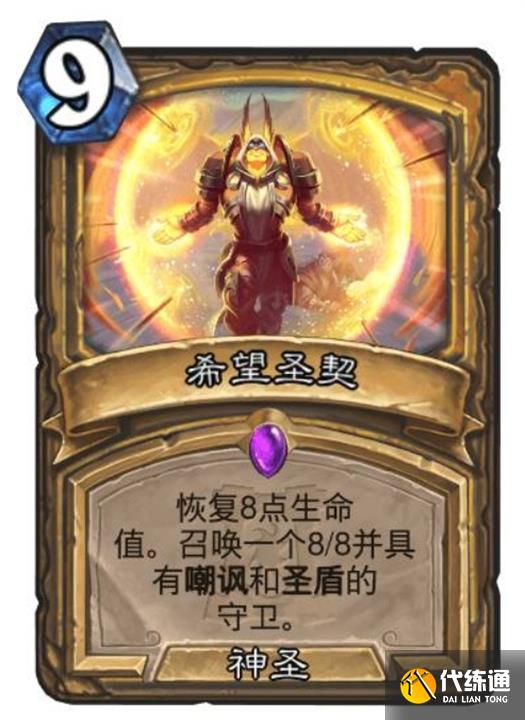 恢復8點生命值。召喚一個8/8并具有嘲諷和圣盾的守衛。