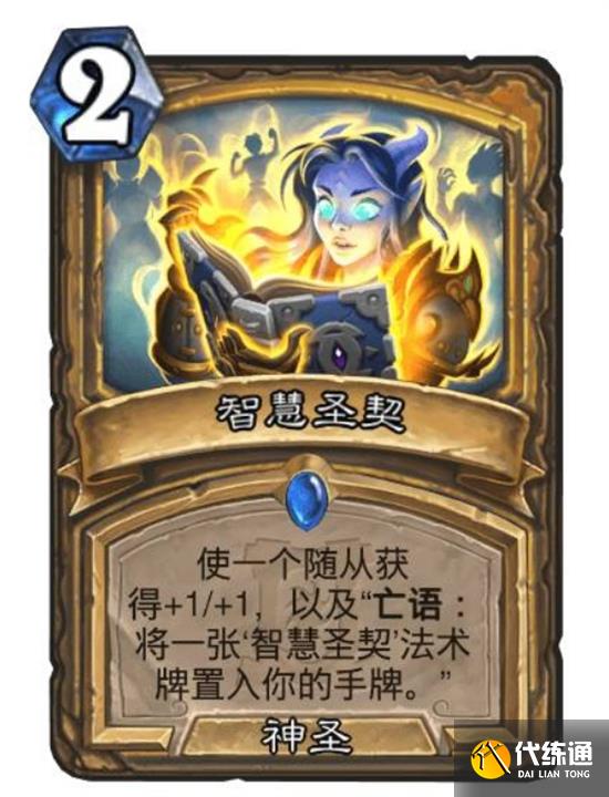 使一個隨從獲得+1/+1,以及“亡語:將一張“智慧圣契”法術牌置入你的手牌。