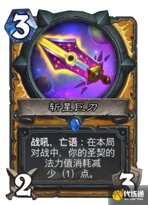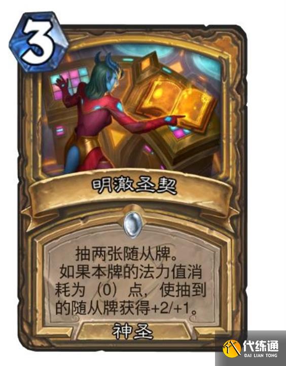 戰吼,亡語:在本局對戰中,你的圣契的法力值消耗減少(1)點。