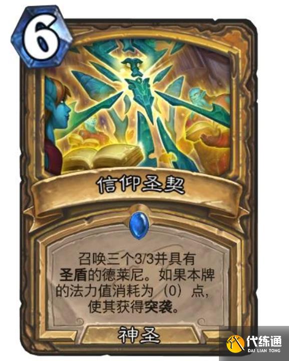 圣盾。戰吼:在本局對戰中,你的圣契的法力值消耗減少(1)點。