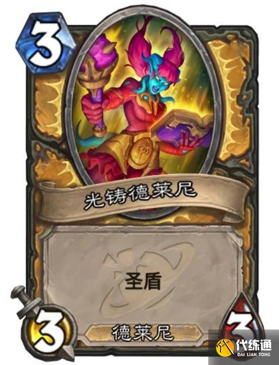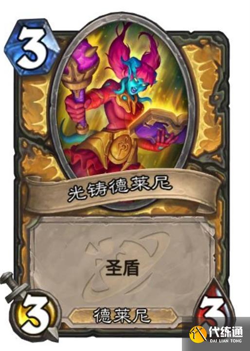 召喚三個373并具有圣盾的德菜尼。如果本牌的法力值消耗為(0)點,使其獲得突襲。