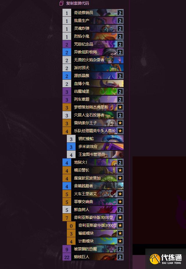 場面手牌沒有最優(yōu)解,首先一定是用最小費(fèi)用抽牌,因?yàn)榕茙烀繌埮贫加匈|(zhì)量,而且有時候就需要一張key牌,比如警長,比如466地獄火。這套牌過牌能力非常強(qiáng),所以很多時候能找到奇跡。然后這套牌的斬殺花樣非常多,需要絞盡腦汁全方位研究明白每一種可能性。需要注意兩張固定數(shù)額斬殺,火車王和樂章,樂章最高是打6,要注意好先打臉還是先開樂章。奇利亞斯最高也是打6,但奇利亞斯如果能和火車王一起上大概是打7+4-5。善用警長和沉默過對面大墻,都是能過擾魔奇利亞斯的。