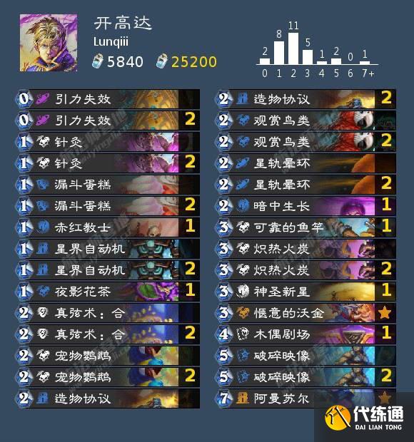 一費如果手里有鸚鵡可以直接丟高達,不然不建議丟,被解了會斷節奏。起手手里有觀鳥和造物協議的時候,建議優先觀鳥,拿小紅高達都是很舒服的,造物協議可以貪鍛造追上限,用來找鸚鵡或者高達。