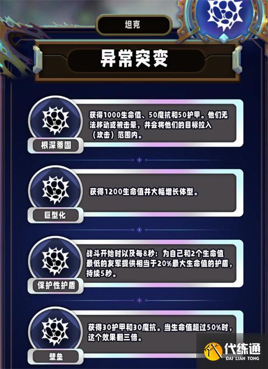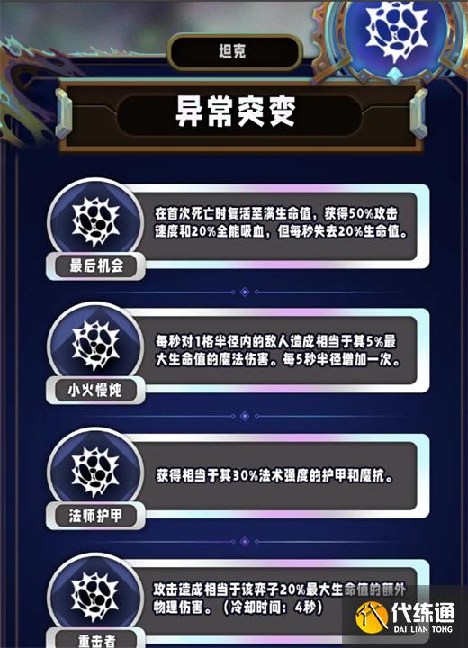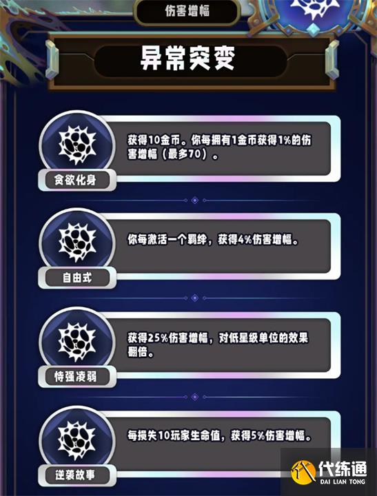 異常突變是一個將在4-6階段激活的全新機制。每個玩家可以選擇一名棋子站位在特殊位置,從而獲得一項獨特的屬性增益,這將對游戲的戰略和布局產生重要影響。