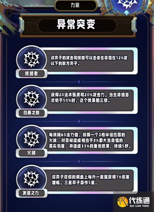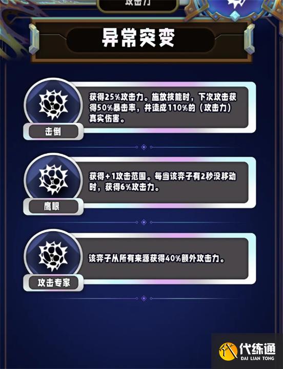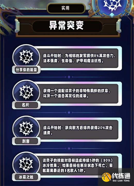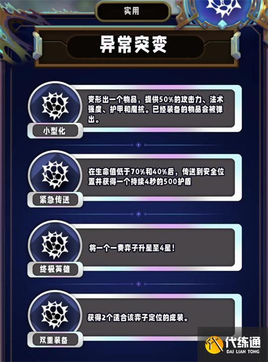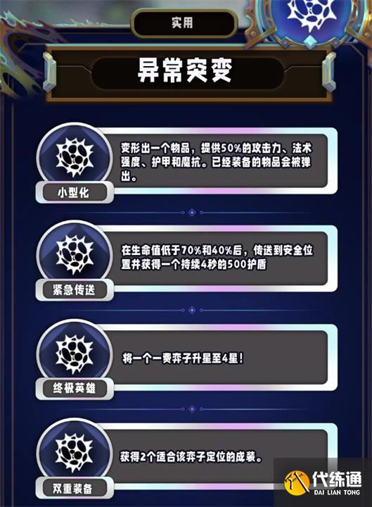 與裝備和羈絆的協同效應:異常突變不僅可以改變棋子的屬性,還可以與現有的裝備和羈絆產生協同效應。例如,獲得 轉職類 的棋子可以突破陣容的限制,創造出意想不到的組合。