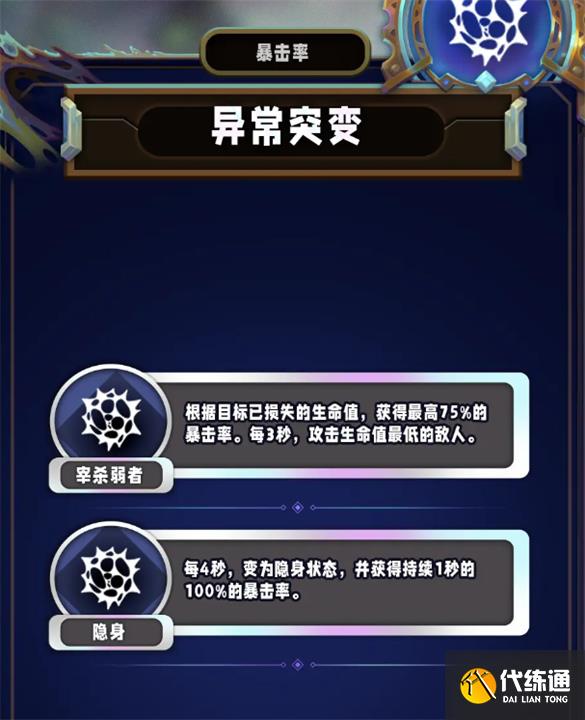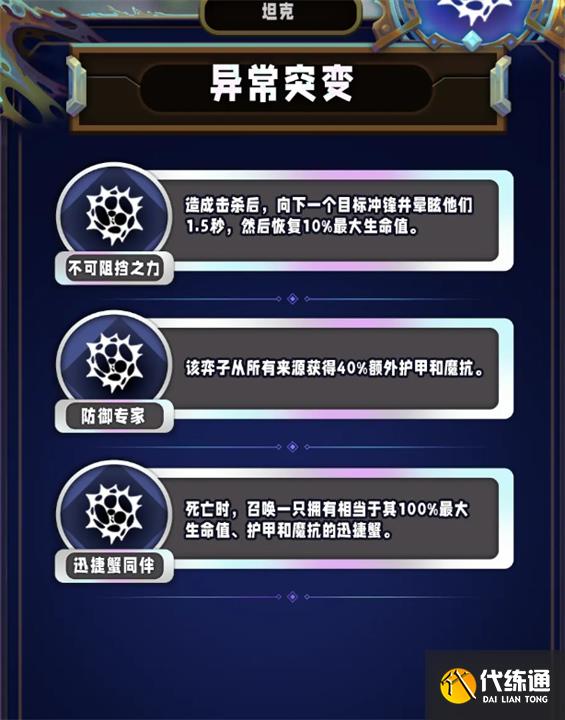 根據棋子特性選擇突變效果:你可以根據陣容中各個棋子的特點來選擇最適合它們的異常突變效果。比如 坦克類角色 應優先選擇 數值類 以增加其生存能力,射手 或 法師類棋子 則可以選擇 強化類 以提高輸出能力。
