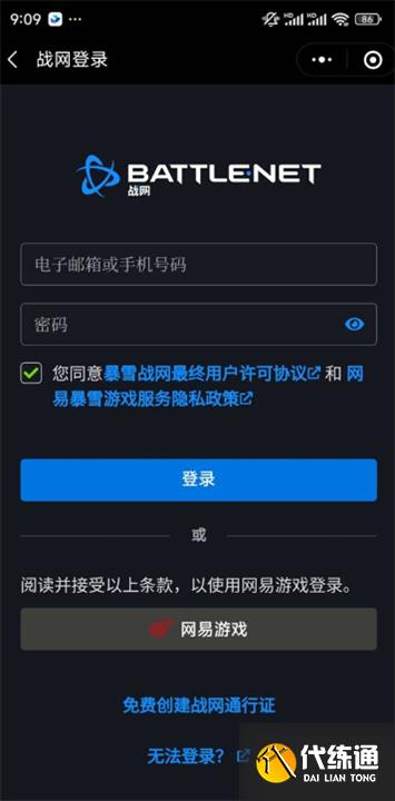系統會要求你綁定戰網賬號,輸入自己的戰網賬號和密碼完成綁定。