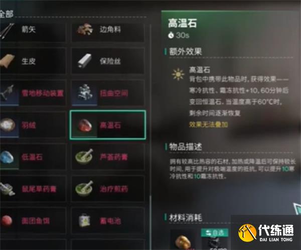 首先,你可以通過解鎖模因燒20個炭來制作一個恒溫石,然后把恒溫石和炭合成高溫石,這樣可以增加10點抗寒能力。簡單來說,就是給自己一個恒溫的“熱水袋”。