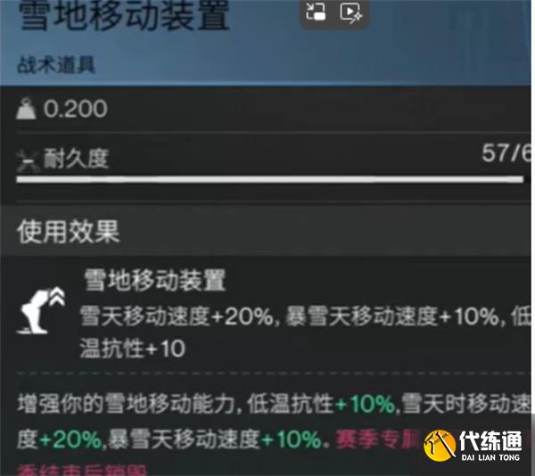 雪地移動裝置能永久增加你20點抗寒能力。這是一個很有用的道具,能在雪國中大大提升你的生存能力。