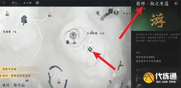 答案:隱月山右側。找到仇越海,接取偷師任務后,交付任務后就能獲得。