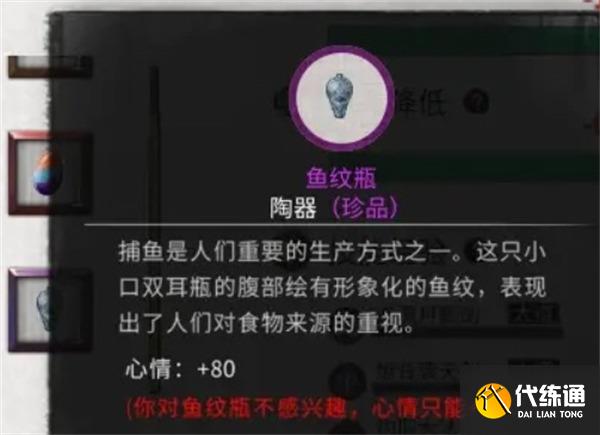 ??在鬼谷八荒中,魚紋瓶是一種道具,主要用于提升角色的心情值。