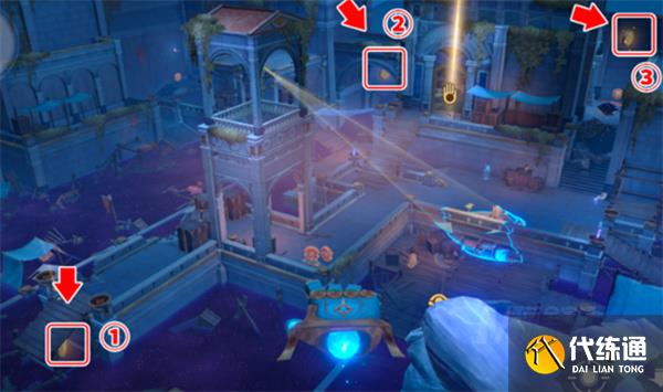 從主殿外延平臺(tái)邊緣跳至隱藏臺(tái)階,推薦使用敏捷角色快速貼邊走位。