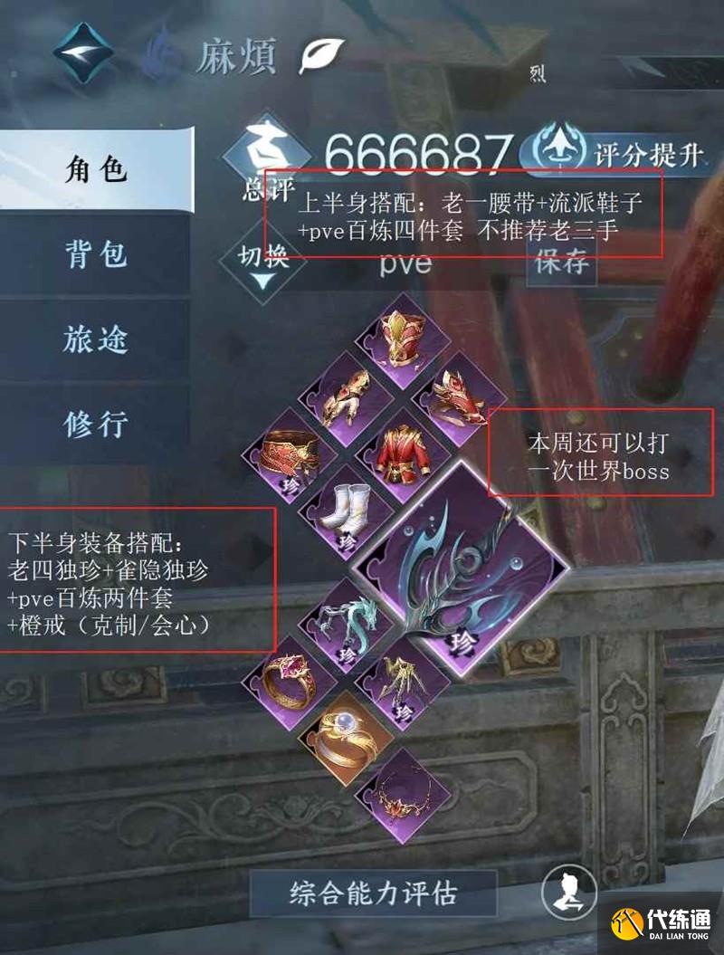 下半身搭配:老四獨珍+雀隱獨珍tpve百煉兩件套+橙戒(會心)