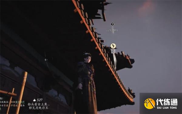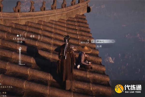 敲鐘后,繼續向更高處攀登,來到建筑最頂層平臺。在屋頂位置可發現一名神秘人,靠近后進行對話。