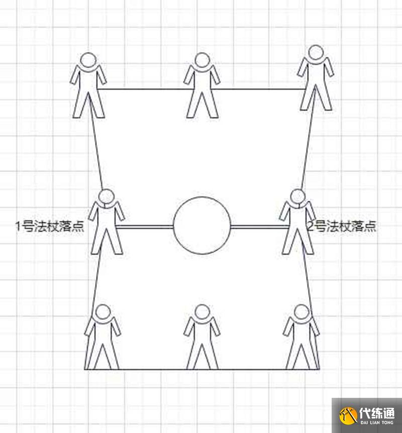然后等他站起來就得去左右兩邊集中等法杖落下第一時間散開站位,每個人都要保持在屏障內保持一定的距離,腳下的黃圈不能跟其他人腳下的黃圈重疊觸碰到。