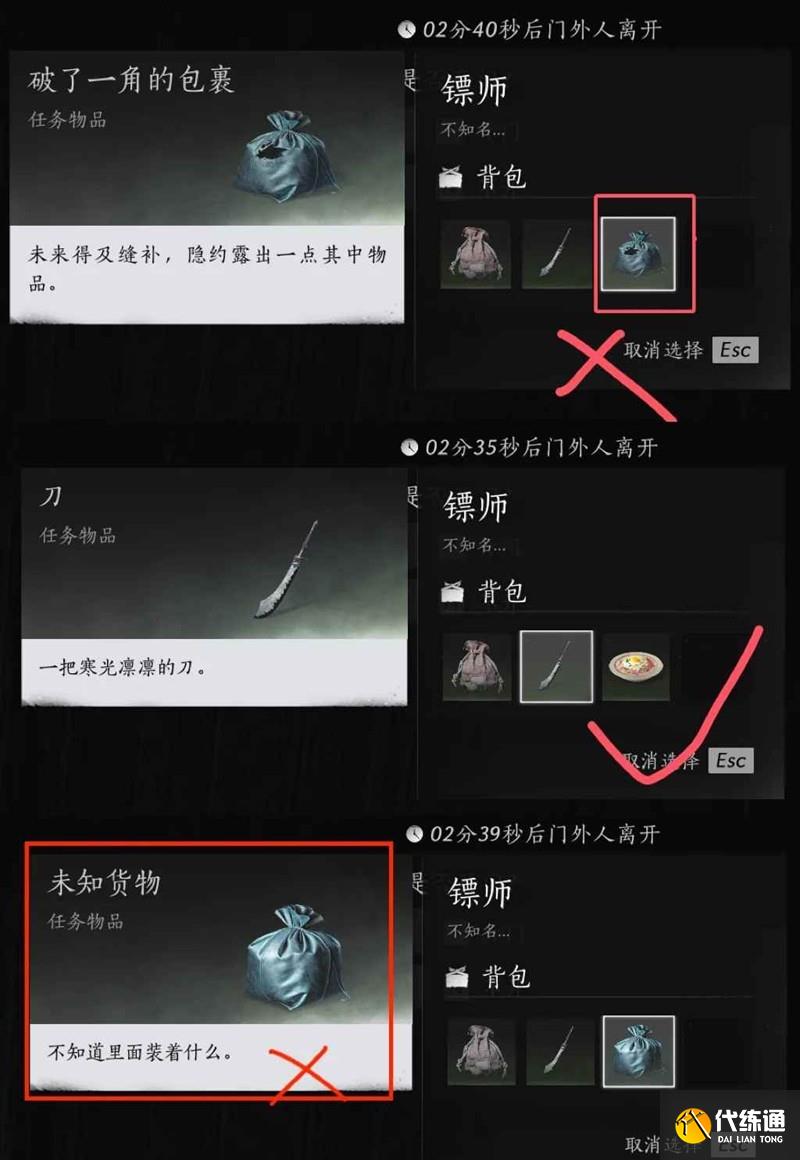 鏢師∶身上有未知貨物、破了一角的貨物都不能進,沒帶貨物帶著菜的可以進