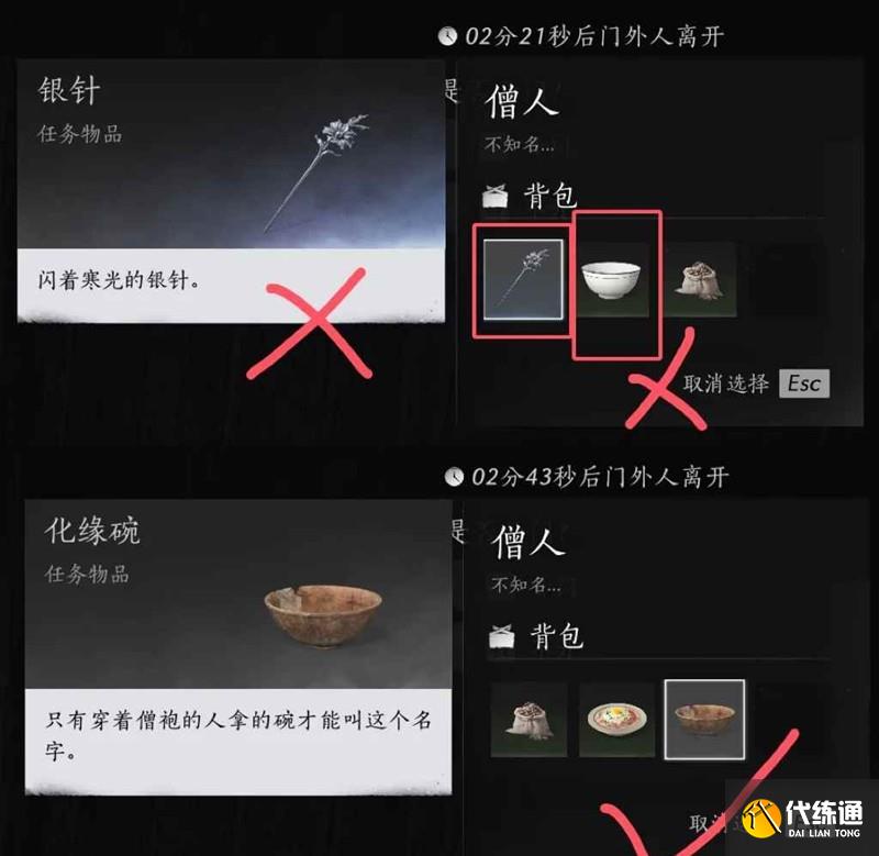 僧人∶白凈的碗、匕首、銀針、燒肉這些東西出現一樣就直接叉出去,化緣碗、蛤蜊或三蔬雜菇、草藥可以開門