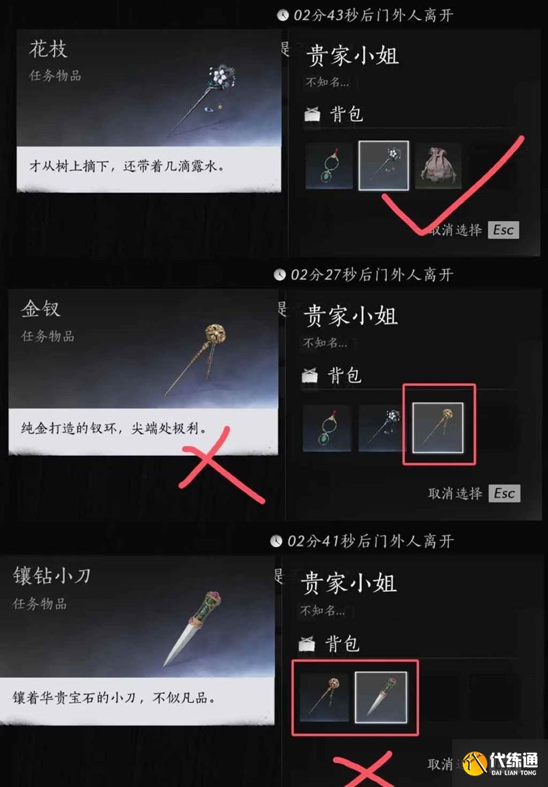 貴家小姐∶只要帶著金釵、鑲鉆小刀這兩樣東西中任何一個的都不能開門,其他可以開門(銀釵也可以)