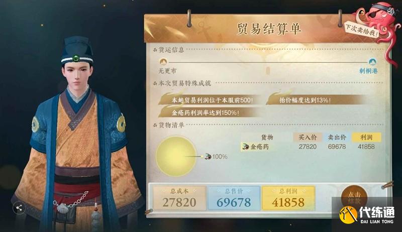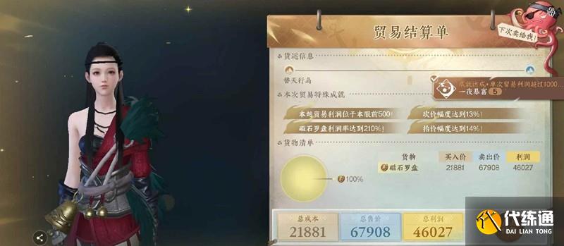 繼續(xù)接貿(mào)易任務(wù) 利潤達(dá)到10萬獲得成就 海上小亨格子+1