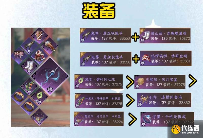 裝備:上半身鬼尊手加梁山伯鞋子或者鬼尊手+獅子頭,根據自身白練情況而定,兩者差不多。下半身鐲子部位,流年>王熙鳳>林黛玉>自走棋鐲子,項鏈選賈寶玉項鏈,如果沒出賈寶玉項鏈可嘗試今天新出的探索戒指