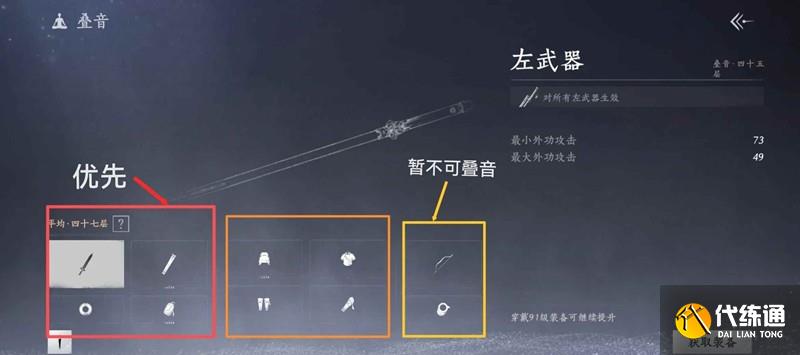 疊音優先級:如果你的疊音等級跟上了版本,就先疊能疊的,我自己是調不出左邊四件裝備,所以就先點右邊四件