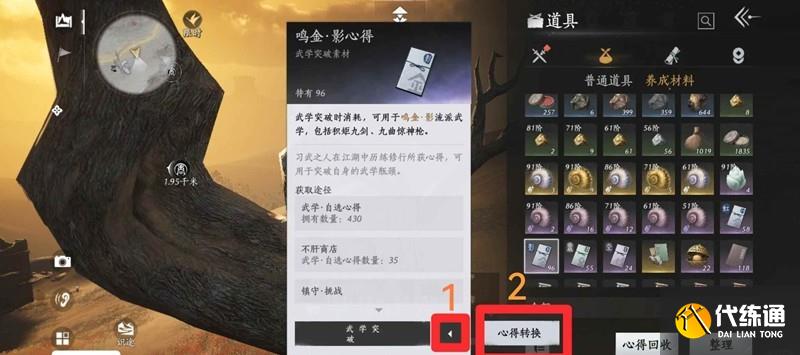 武學的突破會消耗大量武學心得散本,開武器箱子會送流派對應心得,如果發現心得不是你想要的,可以進行心得置換,操作:背包→道具→養成材料→心得轉換