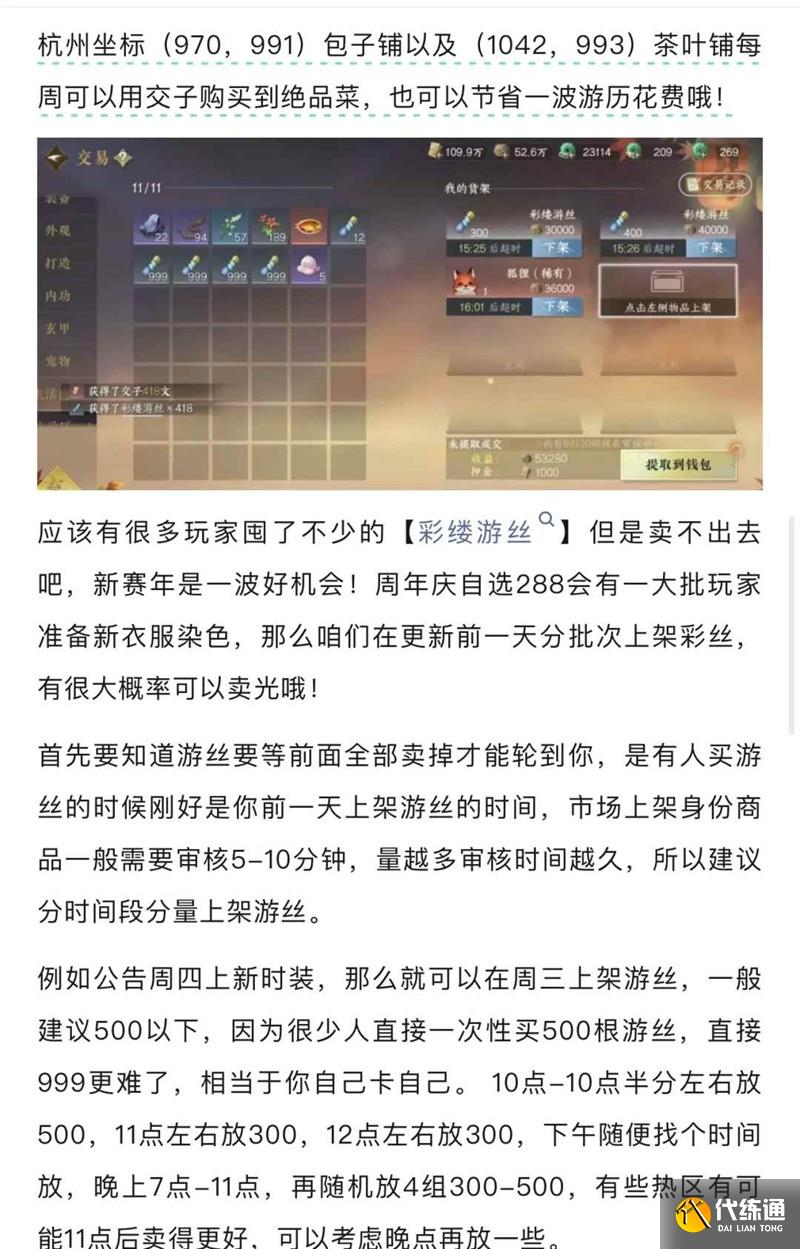 杭州坐標(970,991)包子鋪以及(1042,993)茶葉鋪每周可以用交子購買到絕品菜,也可以節省一波游歷花費哦!