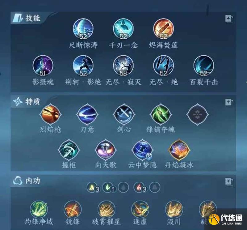 內功:破霄+逢虛+汲川+銳鋒+灼鋒+掠時紋/破戟