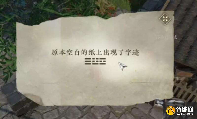 在磁州碼頭附近的小舟旁可以找到一個需要密碼的寶箱。與碼頭船夫對話后獲得空白紙條,用火烤后會出現乾震離三個八卦圖案。根據八卦對應的數字關系,乾為1、震為4、離為3,組合起來就是143這個密碼。輸入后即可打開寶箱獲得珍稀道具。
