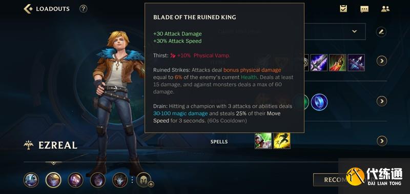 破敗王者之刃在手游中表現尤為出色。自動吸取生命的效果讓EZ的續航能力大幅提升,同時提供的攻速加成讓走A更加流暢。破敗的百分比傷害也讓EZ在面對坦克時不會顯得乏力。