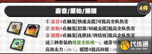 嘉音4、原始4、搖擺4為當前主流輔助搭配方向。盡管三者都存在一定適配門檻,但整體效果依舊優(yōu)于2+2+2雜搭配置。若未能湊齊套裝,可選擇以下過渡方案: