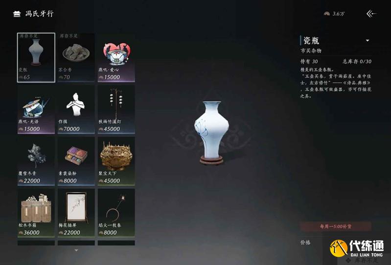 4. 去往馮氏牙行或者其他商店購買三種商品