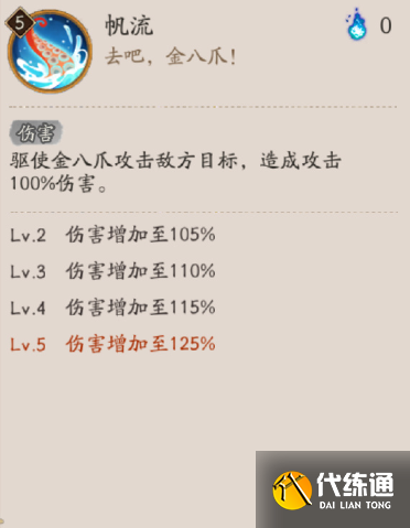 揚起風帆,踏著疾浪前行,提升指定友方目標20%行動條,并攻擊敵方全體2次,每次造成攻擊70%傷害。