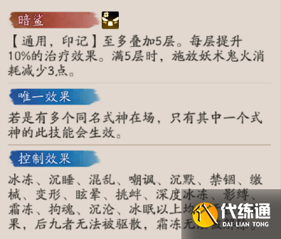 若是有多個同名式神在場,只有其中一個式神的此技能會生效。