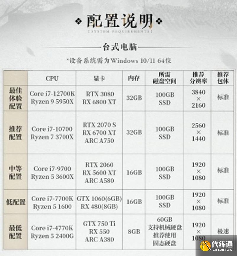 燕云十六聲需要什么配置 燕云最低配置要求一覽