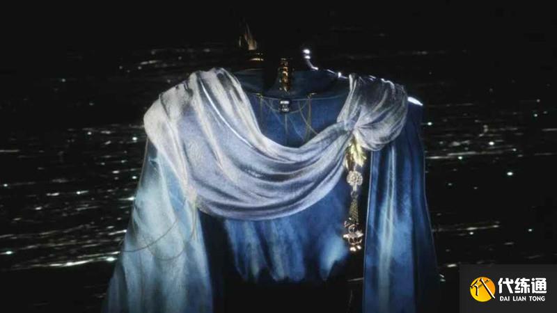 套裝將魚類的生物特征、神話象征與古風華服融合,旨在打造兼具神秘感與尊貴氣質的俠客形象。色彩上,以淵海藍暗合主題“自深淵覺醒,向光明溯游”的故事;又以熔金沙魚骨裝飾與紋樣勾邊,模擬深海礦物輝光,詮釋"深淵珍寶"的尊貴之意。此外,外層薄紗披風模擬水母飄游的透明效果,呈現出“水生生物”的靈動特質。