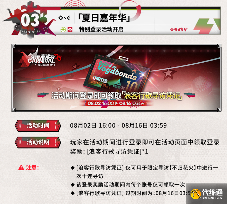 「夏日嘉年華」,限定尋訪每日無消耗獲取,時間:8.2~8.16