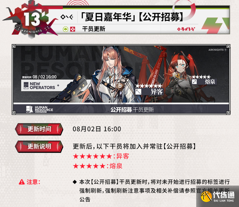 「夏日嘉年華」,【公開招募】干員更新,這次常駐的是異客和熔拳。